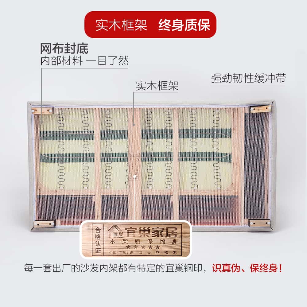 【主要材质】 | 1.沙发接触面料采用优质麻棉,更舒适更耐用. 2.坐靠垫填充座包填充天然乳胶颗粒+15CM高密度海绵. 3.沉稳沙发脚,坚固耐用,承重力更好,长久使用不变形. |