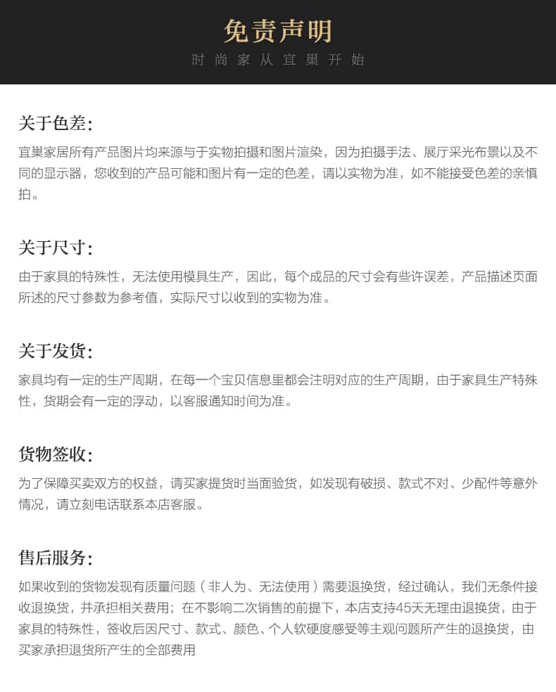 【发货时间】 | 付款后20天左右发货,家具属大件物品生产运输周期较长 | 【售后】 | 45天无理由退换货 |